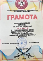Пісківську гімназію гідно представили учні та учениці 5–9 класів. Наша команда «Соколи» виявила витримку, згуртованість, кмітливість та справжній патріотизм.